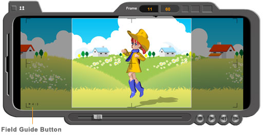 NOTE: Field Guide is useful in determining what screen ratio to use when you export your movie or still picture (snapshot). See Video Settings in Export Movie chapter for addtional output considerations. Changing the guide on Compose Window does NOT effect the framing of the actual export. The framing of the export is determined by the Screen Ratio settings on Export Movie panel. The Compose Field Guide is only used as your composition reference.